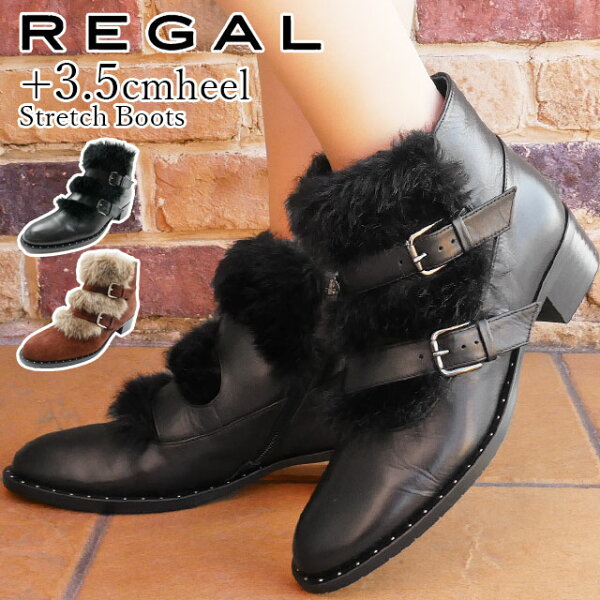 ■商品説明 リーガル REGAL F97K レディース ショートブーツ ファー 革靴 レザー BL(ブラック)RNSS(レッドブラウン)アッパーにファーを存分にあしらい、上からベルトを巻いたデザイン性溢れるブーツ。