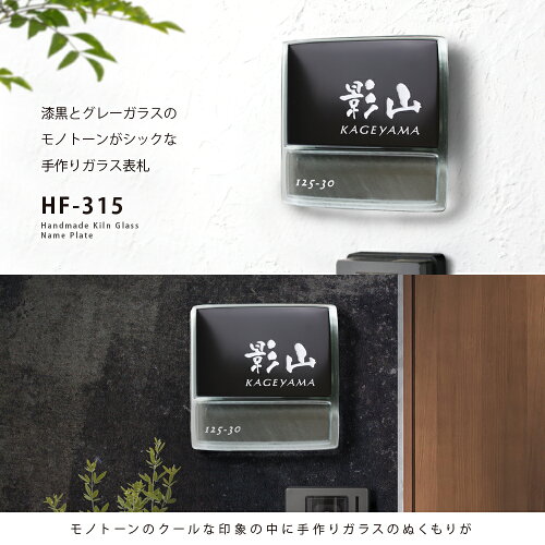 商品名 漆黒とグレーのモノトーンガラス表札 商品番号 hf-315-m 商品説明 こだわりの漆黒とグレーガラスを組み合わせた落ち着きのある印象のガラス表札です。