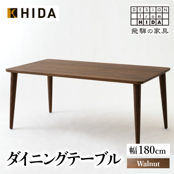産地名高山市内 内容量 主材:ウォルナットサイズ:幅180×奥行90×高さ70 cm (6人掛けに適しています)塗色:WA色天板形:角丸形 天縁面形状:船底面型脚タイプ:丸テーパー4本脚 消費期限 注意事項 ●開梱設置が必要な製品です。