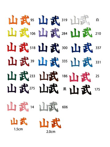 ネーム入れ 刺繍 全20色 1.5cm 2cm ネーム刺繍 学校名 氏名 名前 漢字 金茶 黄色 赤 濃赤 濃緑 紫 薄ピンク 青薄 紫 紺 水色 茶色 黒 グレー 白 黄緑 濃青 ターコイズブルー ピンク 茶 弓道着 袴H-092