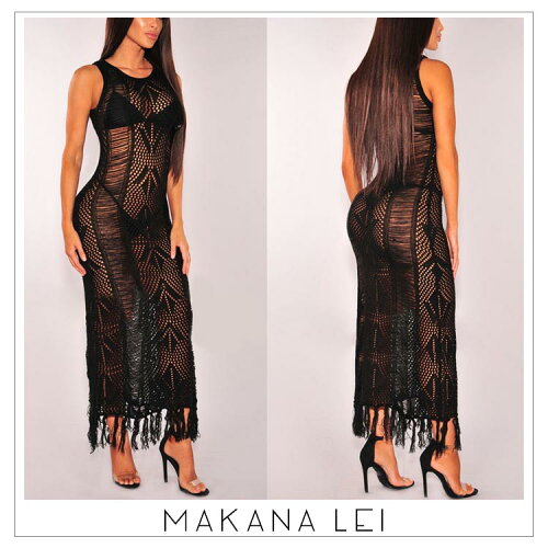 【20%OFF 楽天スーパーSALE】 レディース ドレス 夏 かぎ編み セクシー スケスケ ノースリーブ タッセルローブ ワンピース ワンピ ロング ナイトウェア ぎ編みレース 花柄 背中開き タイト ハイネック ホルター タートル 大きいサイズ 結婚式 レトロ ワンピース 二次
