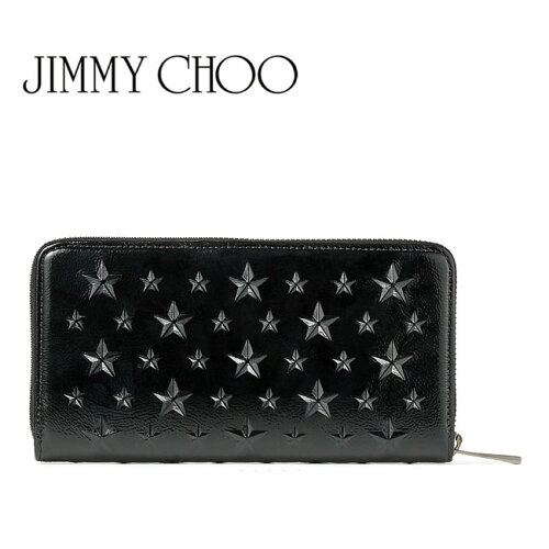 【JIMMY CHOO】ジミーチュウ PIPPA WIQ BLACK GUNMETAL GLOSSY EMBOSSED STARS LEATHER 長財布 ジップ アラウンド 財布 ファスナー 本革 レザー プレゼント ギフト