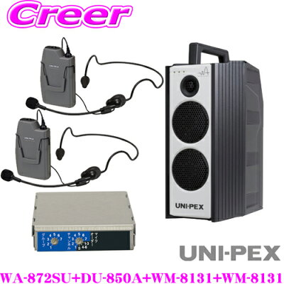 UNI-PEX ユニペックス WA-872SU+DU-850A+WM-8131+WM-8131 防滴ワイヤレスアンプ+マイクロホン(ヘッドセットタイプ) 2つ+チューナー セット SD/USBレコーダー+CDプレーヤー+チューナー 【高音質 ノイズに強く途切れにくい】