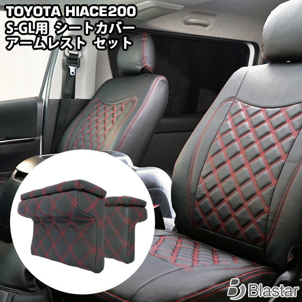 【スーパーGL S-GL専用】ハイエース レジアスエース 200系 シートカバー 同色 小物入れ付きアームレスト(開閉式) セット