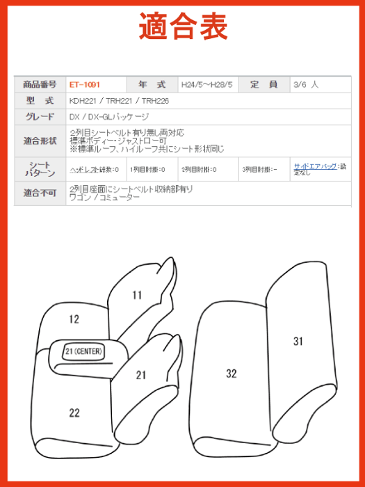 200系ハイエースバン/H24.5〜H28.5/KDH,TRH200系/3、6人乗り/DX/ワイドボディ可/トヨタ/クラッツィオ プライム シートカバー/アイボリー,タンベージュ,ライトグレー,グレー,ブラック/clazzio クラッチオ/ET-1091