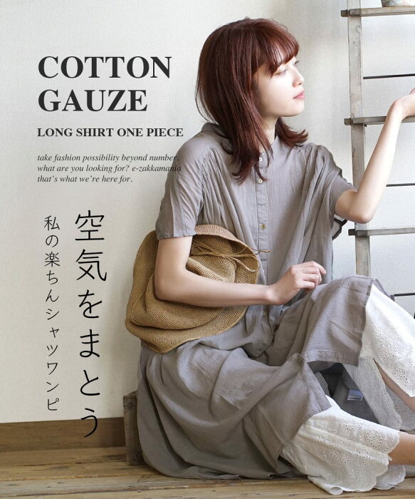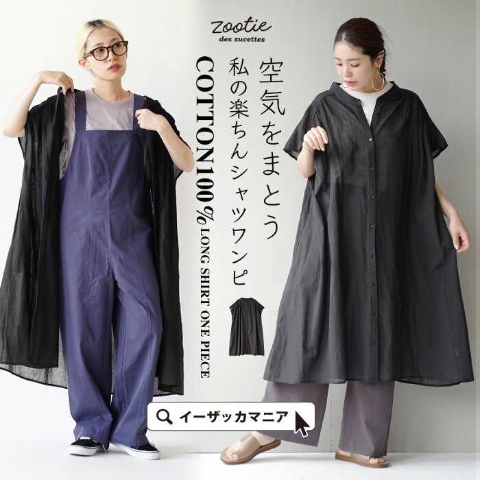 【BIGバーゲン】ワンピース / 羽織り シャツワンピース レディース ワンピ ロングワンピース ロング 半袖 綿100% コットン 大きいサイズ ゆったり 夏 【メール便可22】◆zootie(ズーティー):コットンガーゼ ロングシャツワンピース