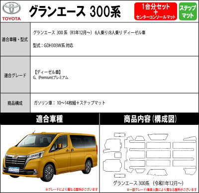 トヨタ グランエース 300系 GDH 6人乗り 8人乗り 新型 フロアマット 1台分セット+ステップマット 【スポーツ】 13440通り フロアーマット カーマット アクセサリー 防水 かわいい オシャレ カジュアル ドレスアップ キャンプ カスタマイズ エントランス セカンド