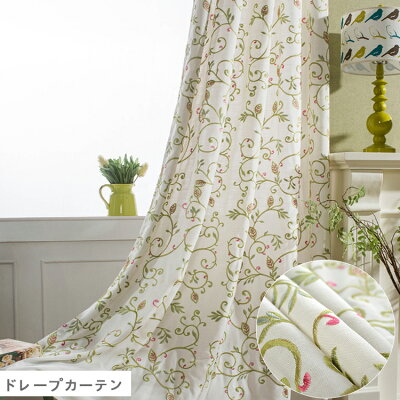 カーテン エスニック 遮光 一枚 北欧 グリーン カーテン 刺繍 アラベスク 2枚セット カントリー 花柄 非遮光 送料無料 かわいい おしゃれ オーダーカーテン ボタニカル 防音 生地 綿 腰高窓 出窓 カーテン UVカット間仕切り 遮熱 洗える 幅150 幅200 丈178 丈180